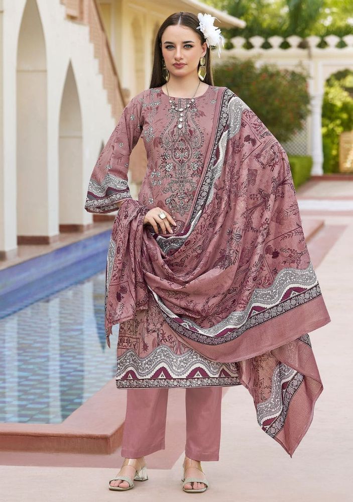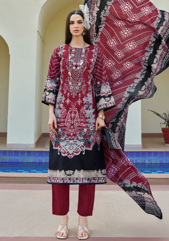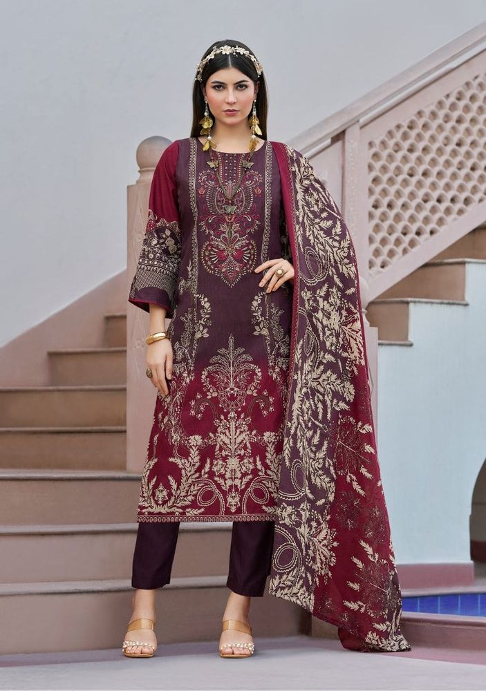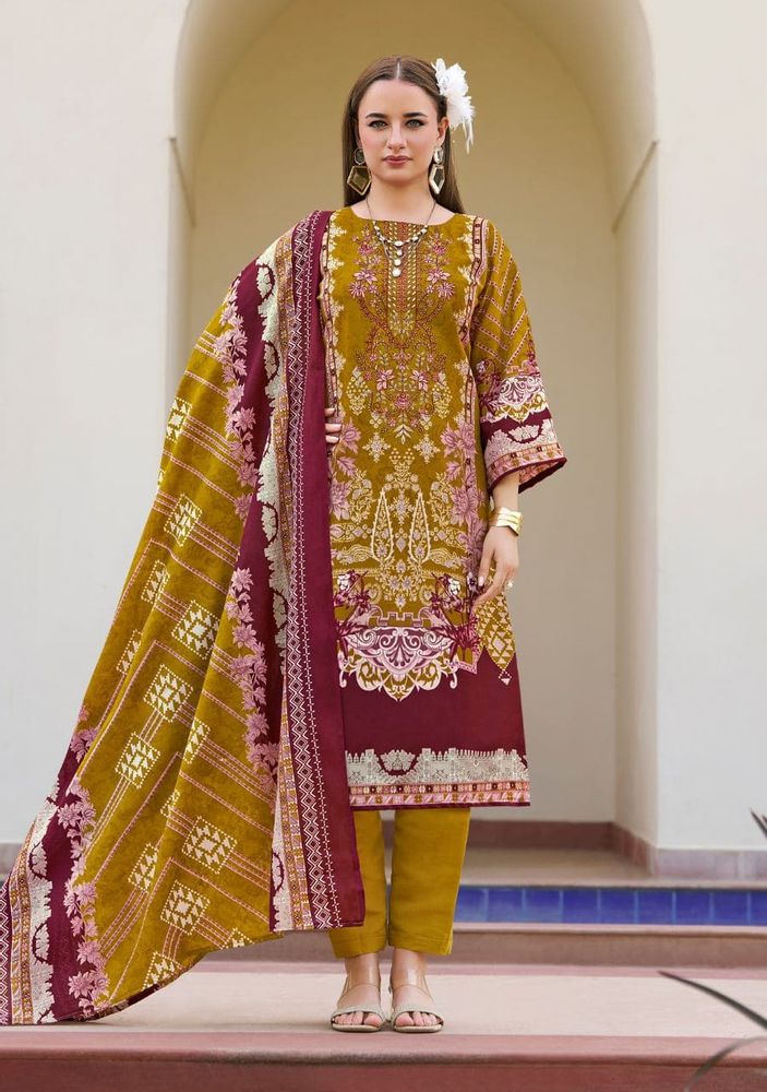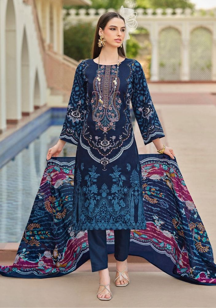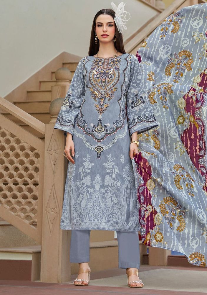 Experience festive elegance with AARZU VOL 23 by ROMANI, a beautifully crafted collection designed for comfort and style. Each suit features a Premium Soft Cotton top with detailed heavy embroidery work, giving it a rich and refined look. The Soft Mal Mal dupatta adds a light, breezy touch, while the Soft Cotton salwar completes the outfit with smooth comfort.