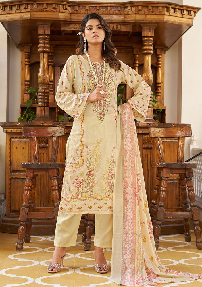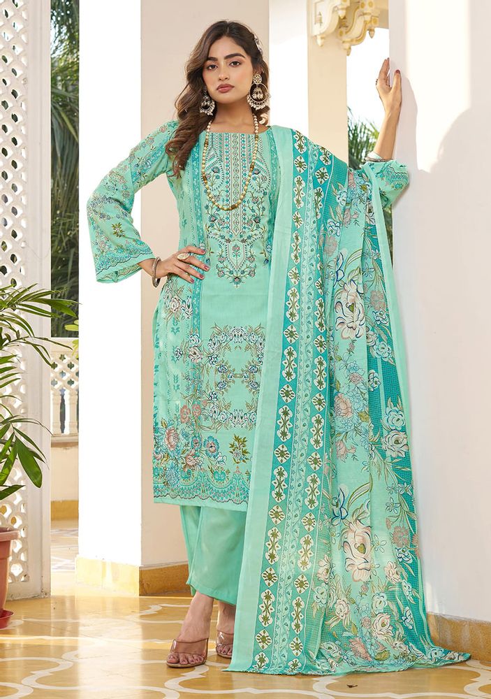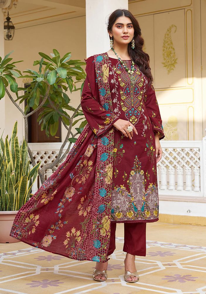 The top is made from premium soft cotton with digital-style prints and heavy embroidery work, giving it a rich festive appeal while remaining light and breathable. Paired with a soft cotton mal mal dupatta, the set delivers a smooth texture and elegant drape that enhances the overall look. The soft cotton salwar completes the ensemble, offering comfort, balance, and ease of styling. Ideal for festive occasions, ethnic gatherings, and boutique displays, AARZU Vol-24 reflects timeless charm with modern comfort.