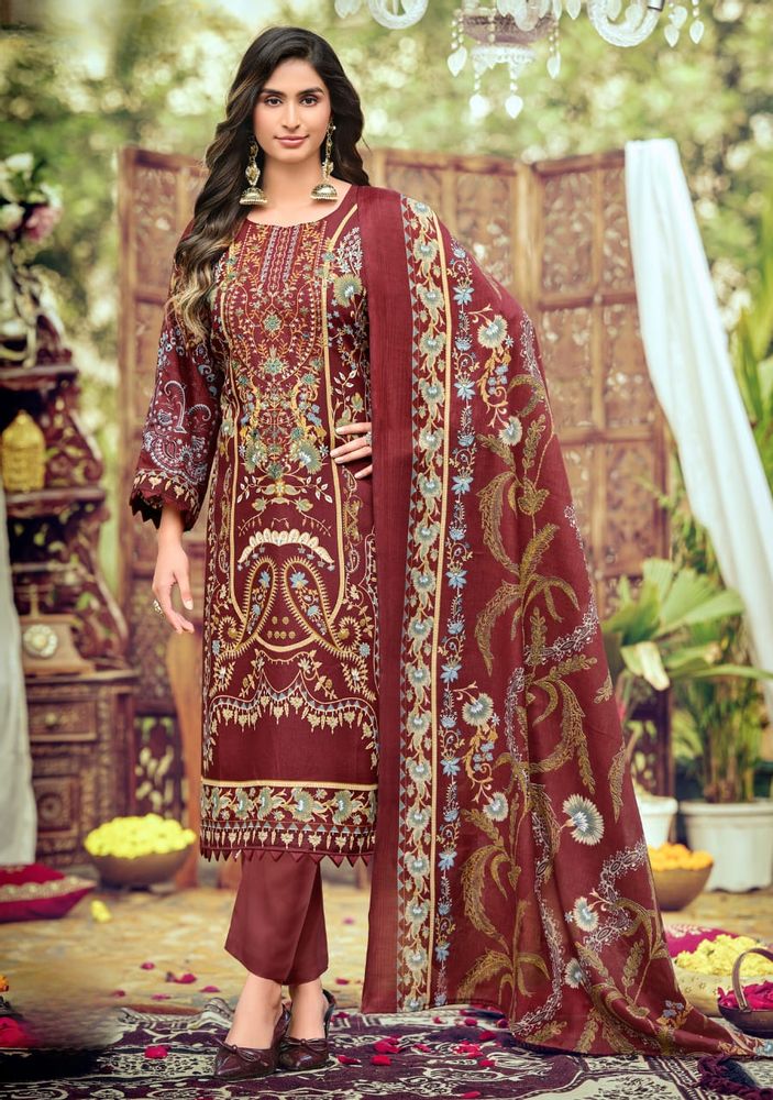 The top is crafted from premium soft cotton fabric with attractive digital style prints and heavy embroidery, giving it a rich and stylish look. It is paired with a soft malmal cotton dupatta, known for its light feel and graceful drape. The set also includes a comfortable cotton salwar, suitable for all-day wear.