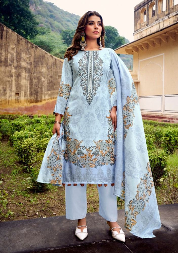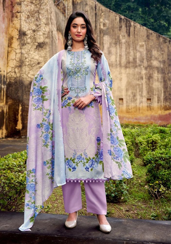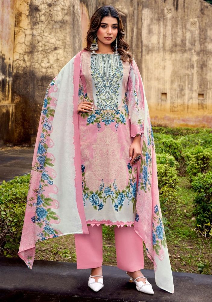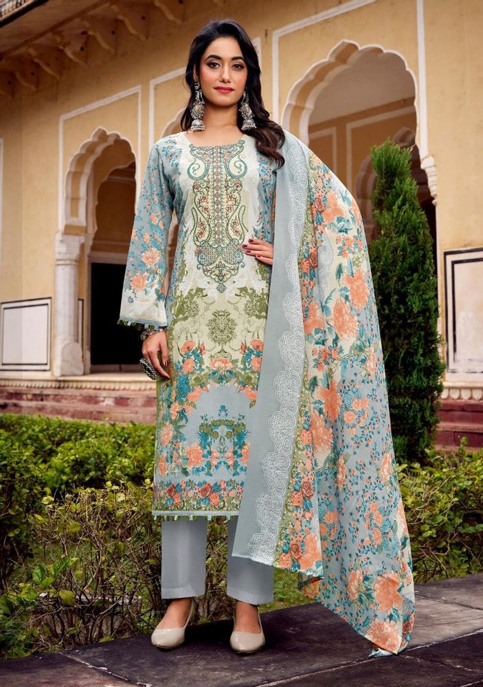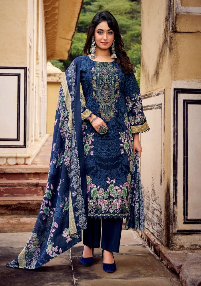 The set includes a soft mal mal cotton dupatta that adds a graceful and lightweight feel, paired with a matching soft cotton salwar for all-day comfort. This catalogue suit design is ideal for retailers and resellers looking to expand their ladies suit catalogue with high-quality festive options.