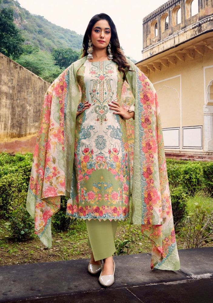 🔹 Top: Premium Soft Cotton Digital Print with Heavy Embroidery (2.50 mtrs apx)