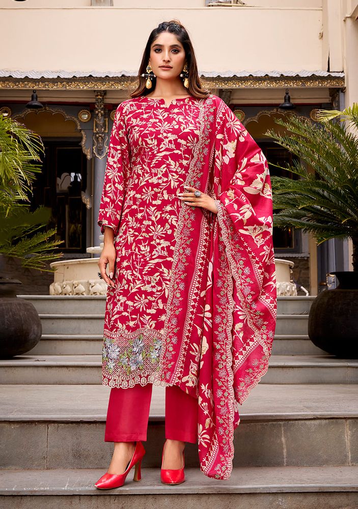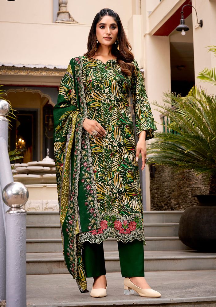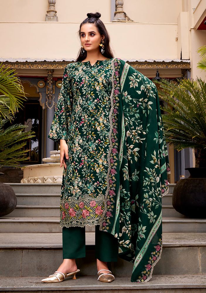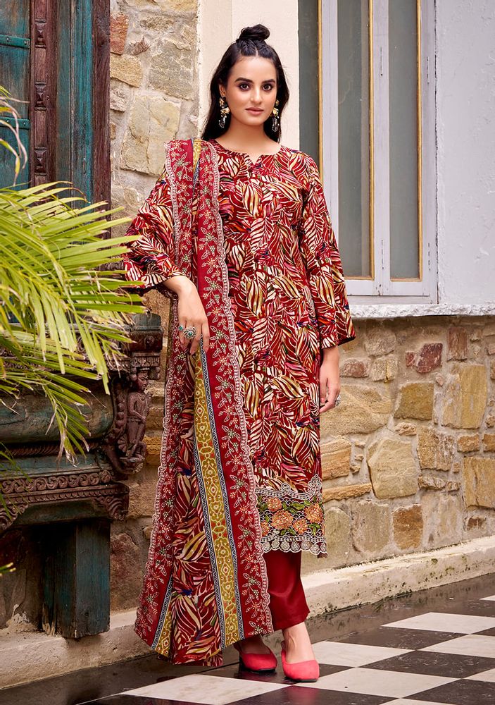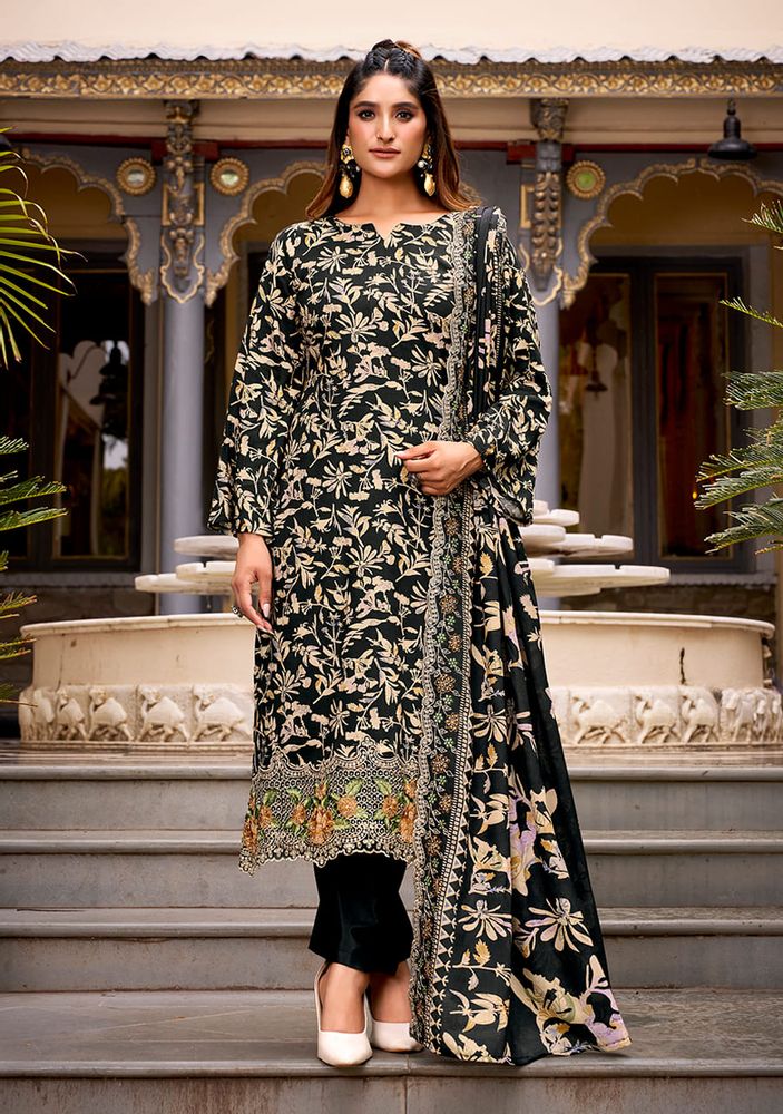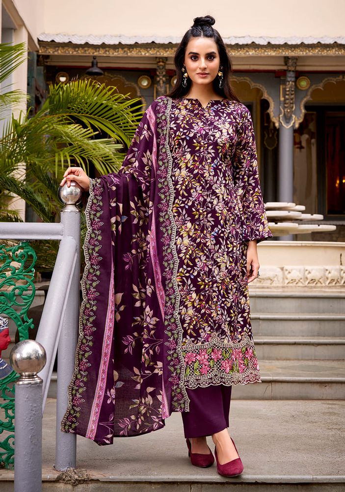 Experience elegance with “ABHIRA” by Belliza Designer Studio, a premium winter collection wear crafted from pure cotton with heavy embroidery work and scalloped detailing. This stunning set includes a malmal cotton dress material dupatta with two-side embroidery and a pure cotton bottom for all-day comfort and style.