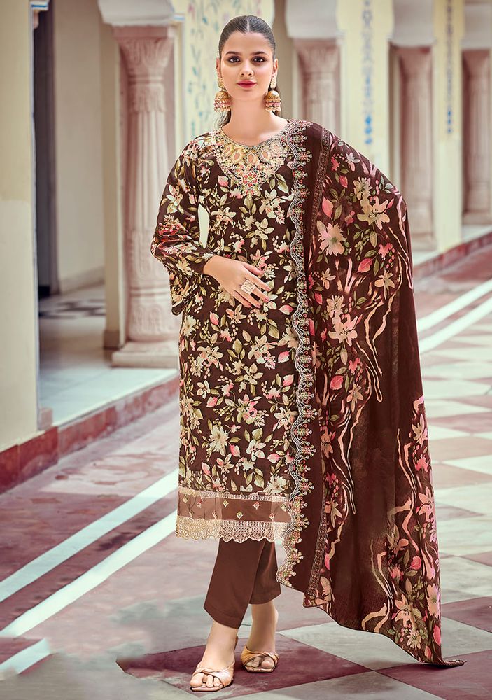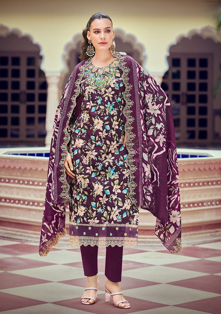 Top: 2.50 mtrs approx, pure cotton digital prints with Kashmiri cut work embroidery, scalloping & organza daman work