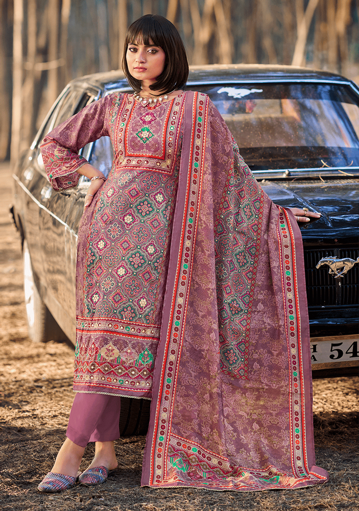 Apsara - Premium Viscose Muslin Suit with Digital Prints and Gota Work