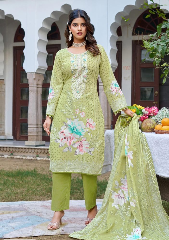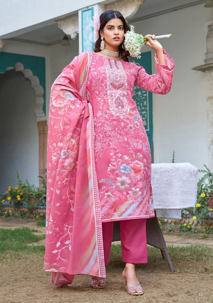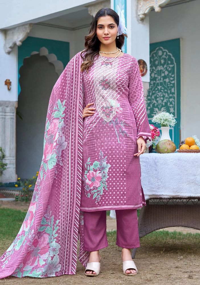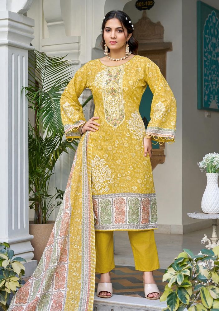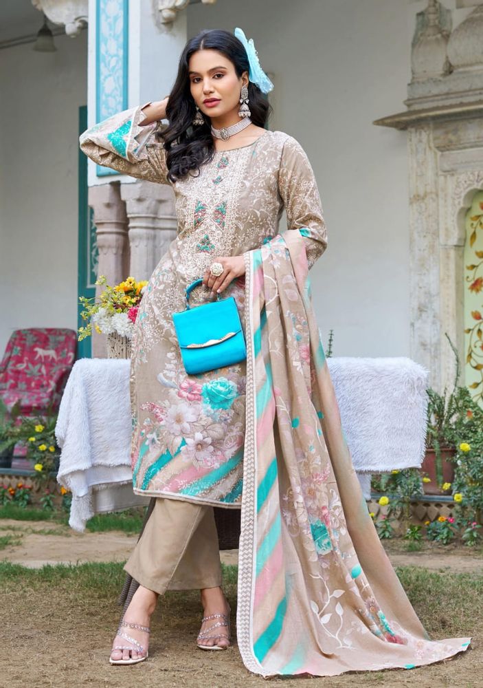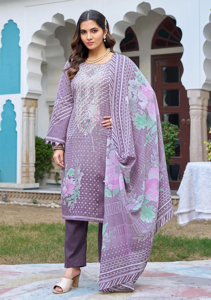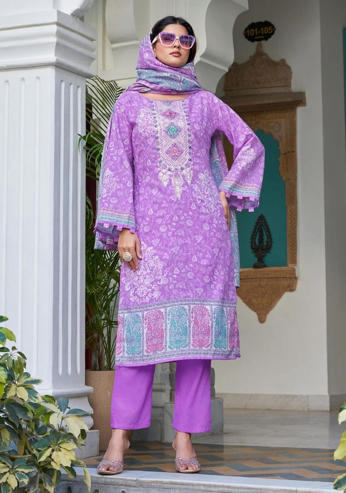 The look is completed with a soft mal mal cotton dupatta and a comfortable pure cotton salwar, making it ideal for both style and comfort. Perfect for boutiques, resellers, and women looking for premium designer suits, FARAH VOL 2 blends luxurious fabrics, detailed embroidery, and timeless design in one complete set.