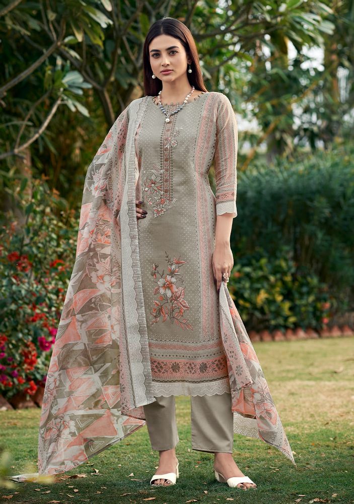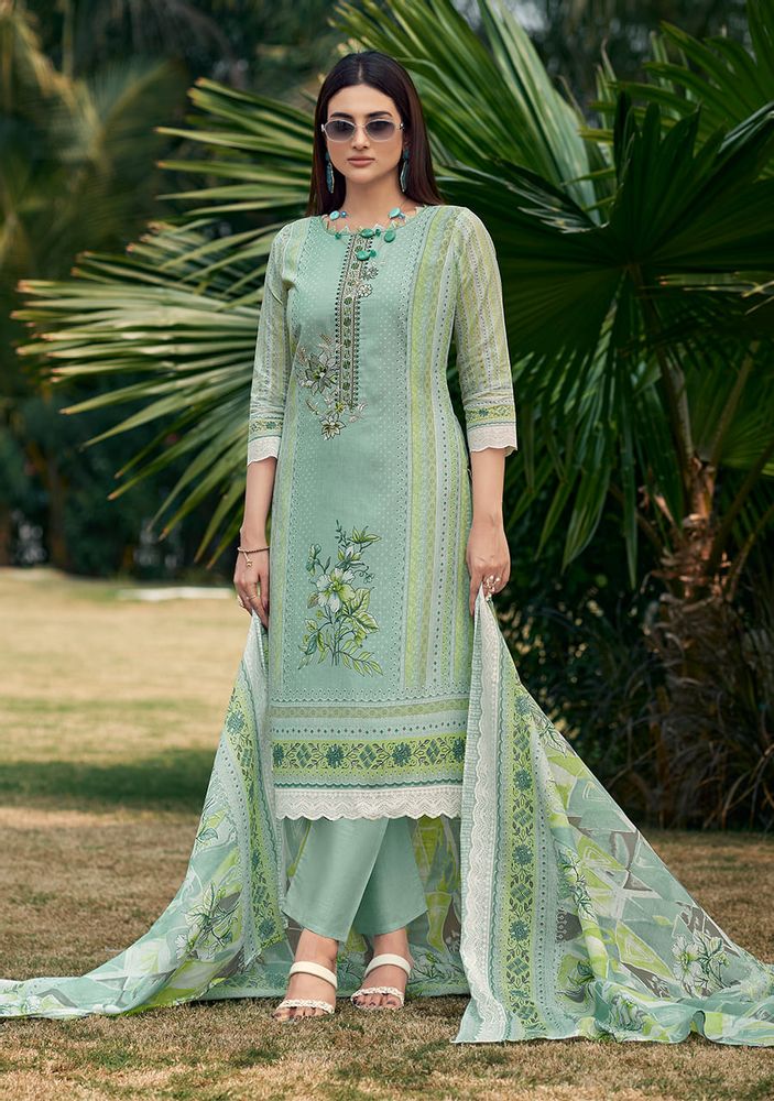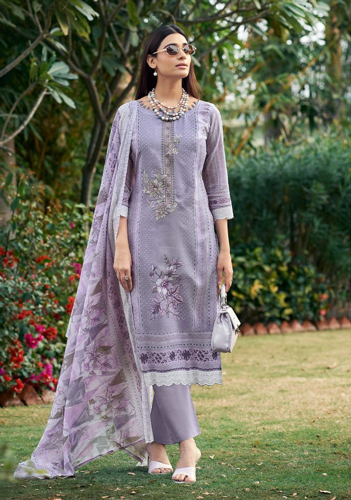 FIRDAUS - Designer Embroidery Pure Cotton Suit with Mal Mal Dupatta | Belliza Designer Studio