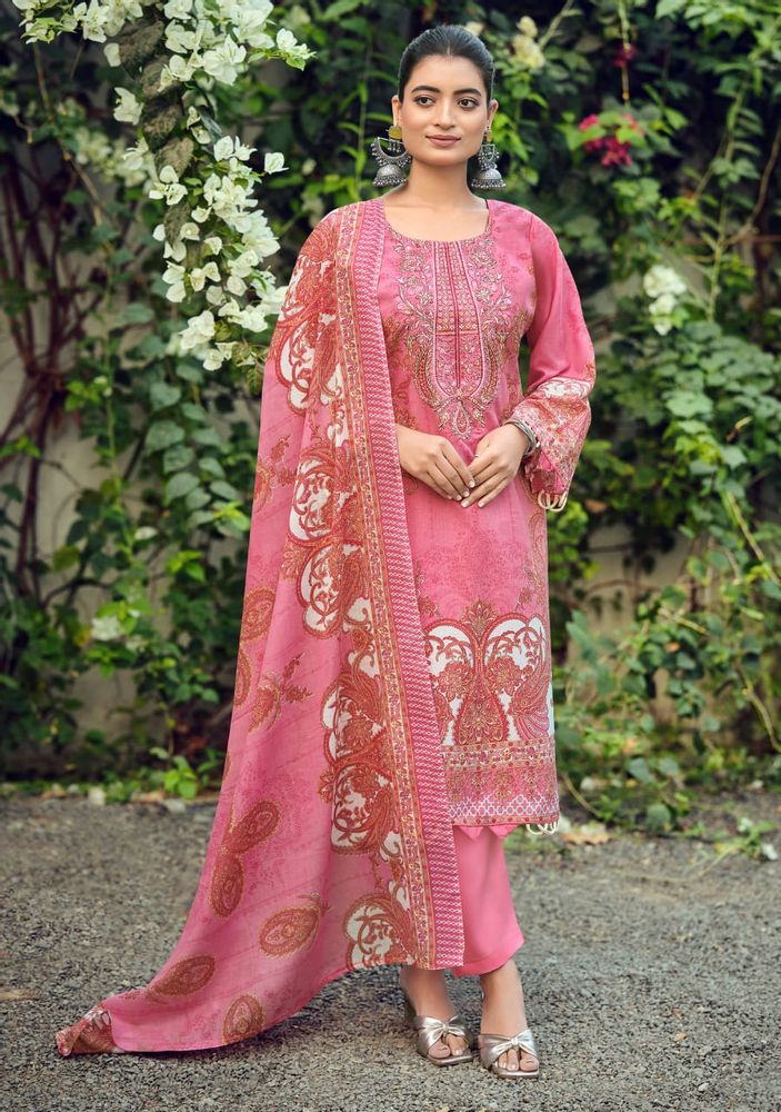 The top is made from 100% pure cotton designer-printed fabric and comes with elegant designer embroidery work, adding a rich and stylish look to the outfit. It is paired with a soft and breathable pure cotton mal mal printed dupatta, which enhances the overall design and gives the suit a graceful finish.