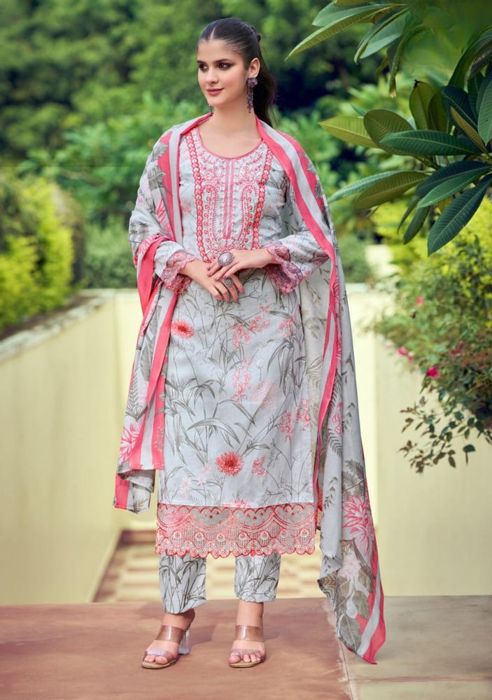 The HIBA by GULREZ collection brings a stylish, ready-made stitched suit crafted with premium fabrics and exquisite detailing. The top is made from 100% pure cotton featuring exclusive neck, sleeves, and daman embroidery, offering a refined and elegant appeal. It is paired with a soft pure malmal cotton printed dupatta, providing comfort and a graceful flow. The bottom is stitched from pure soft cotton, ensuring a smooth drape and comfortable fit.