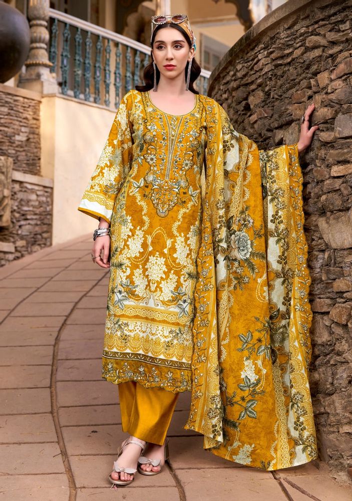 The top is crafted from 100% pure cotton with stylish digital prints, enhanced by exclusive heavy self embroidery and elegant daman work, giving the outfit a rich and classy appearance. The mal mal cotton dupatta, finished with heavy embroidery work, adds a premium touch and elevates the overall look beautifully.