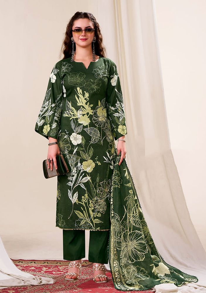 Experience the elegance of LATIFA by Zulfat, a premium addition to the Surat fabrics and wholesale clothing collection. This exclusive designer suit combines luxury and comfort with a 100% Pure Jam Cotton Satin top featuring exquisite, heavy handwork and artistic designer prints. The soft Pure Cotton Malmal Dupatta with 4-side lace detailing and the Pure Cotton bottom make this outfit perfect for festive occasions, casual gatherings, or boutique collections.