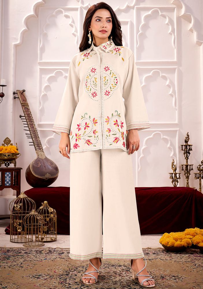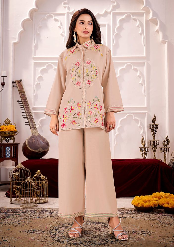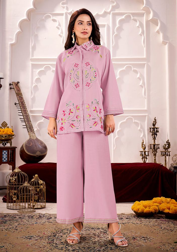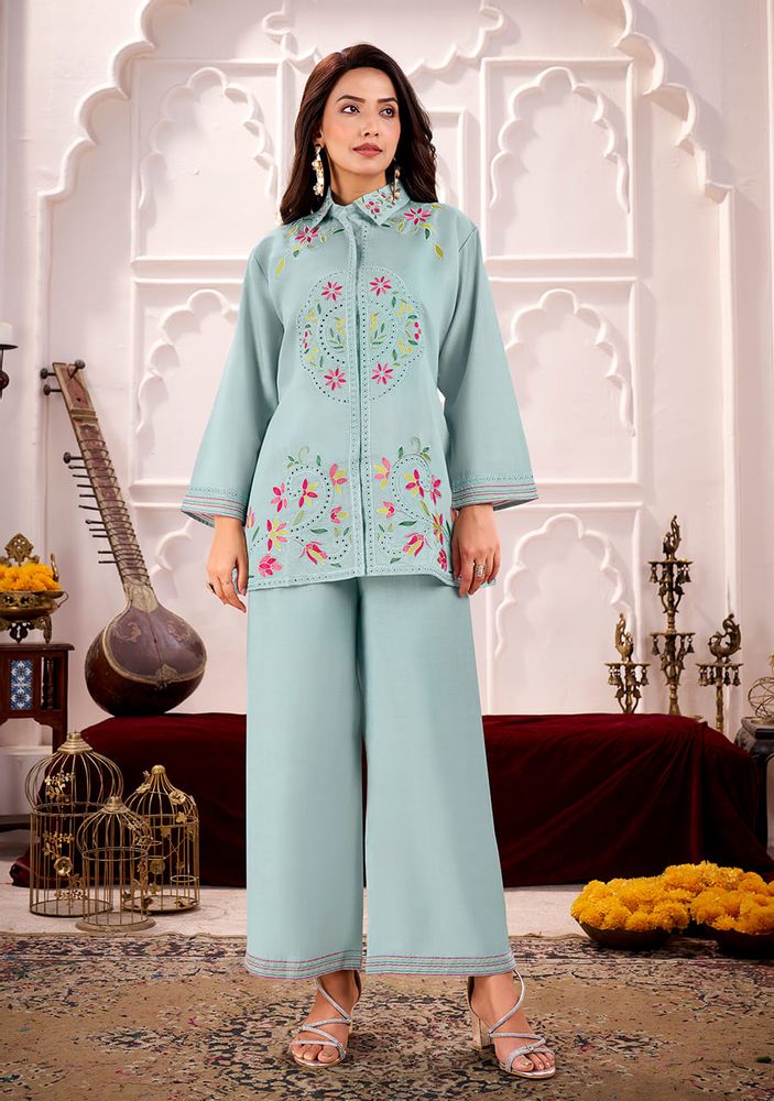 LINA by Gulrez - Premium Roman Silk Ready-Made Embroidered Cord Sets - Designer Collection for Women | Belliza Designer Studio