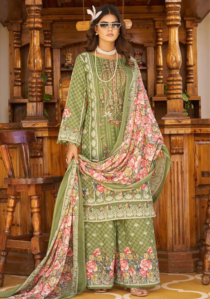 Romani presents Mahira Vol-5, an exclusive festive collection designed for comfort and elegance. This set features a premium soft cotton top with beautiful digital-style prints and rich, heavy self-embroidery, giving it a refined, festive look.