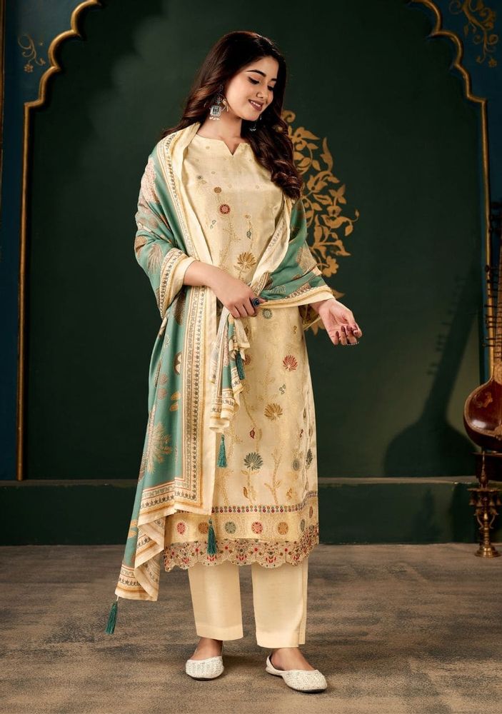 MAHVISH - Premium Viscose Shimmer Jacquard Designer Suit with Embroidery & Muslin Dupatta| Belliza Designer Studio