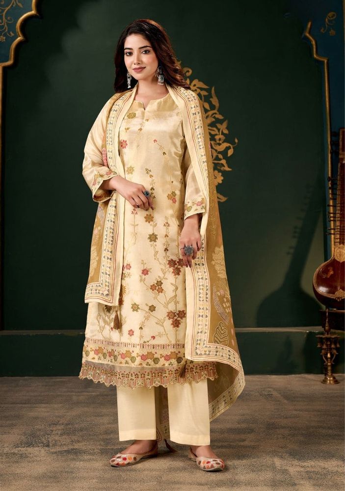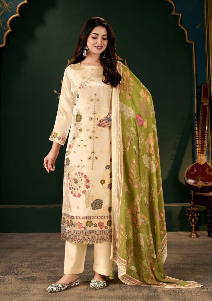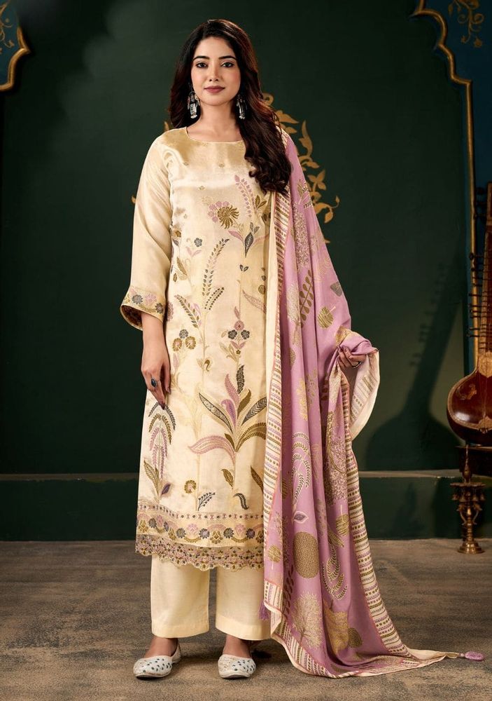 The top fabric is made from 100% pure viscose shimmer silk jacquard, known for its rich texture and elegant shine. It comes with beautiful embroidery work that adds a luxurious designer touch to the outfit. The fabric is soft, stylish, and comfortable to wear.