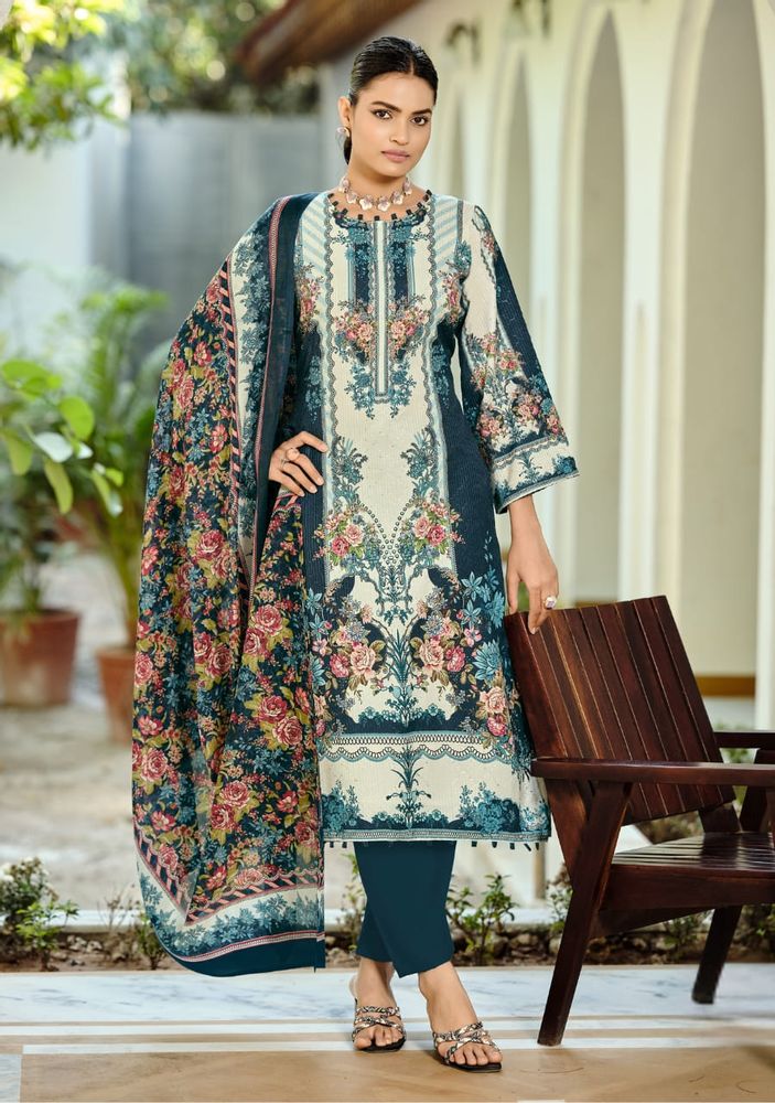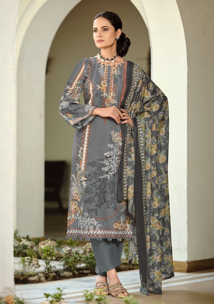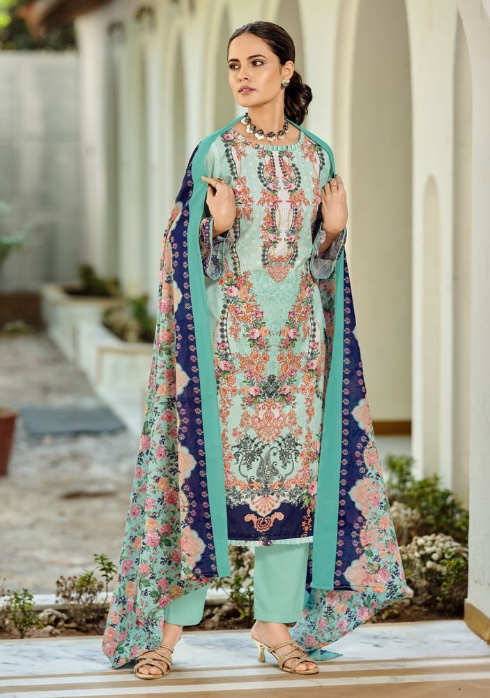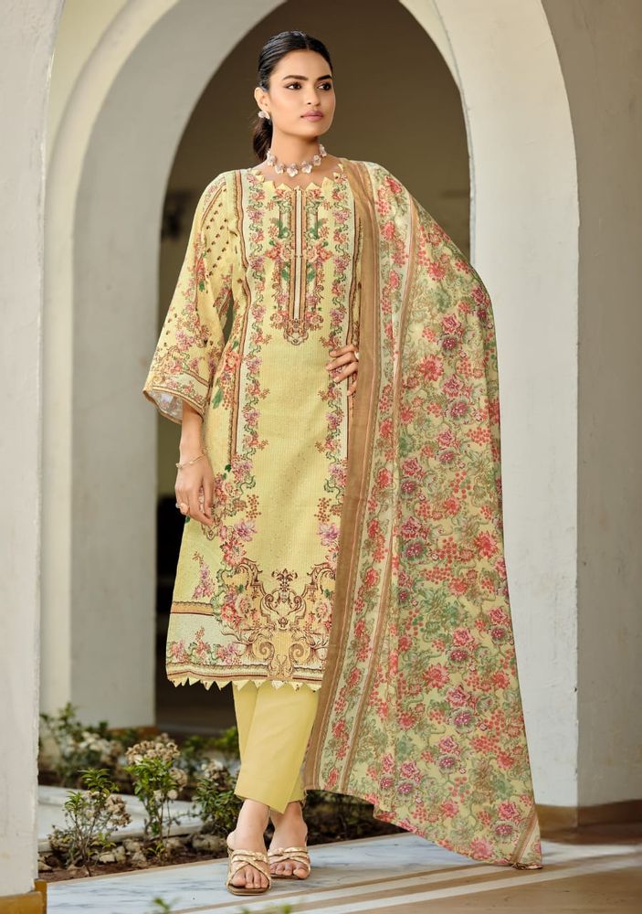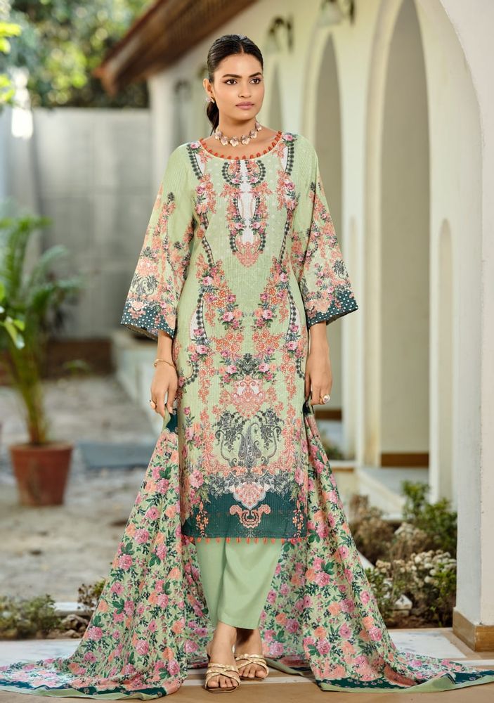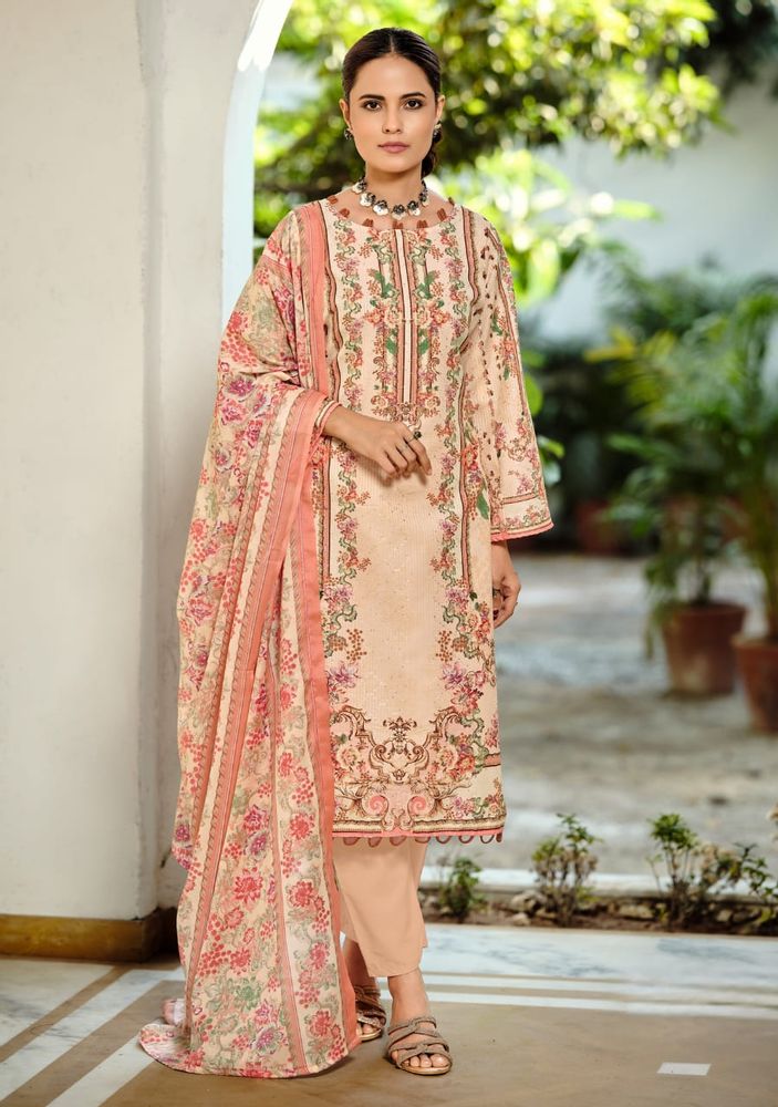 NAFISA Vol 2 is an exclusive festive cotton suit collection featuring a perfect blend of digital print and embroidery. The premium soft cotton fabric gives a comfortable feel, while the digital print on embroidery adds a stylish and modern touch. Paired with a soft, cotton dupatta, this set offers a light and elegant look, making it ideal for festive wear as well as daily use. This collection fits perfectly in trending categories like cotton dress material and printed cotton dress material, making it a great choice for modern buyers.
