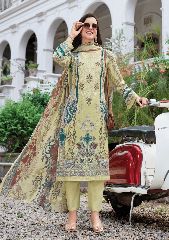 NAIRA VOL-141 is a premium cotton collection designed for comfort and elegant daily wear. This set features a 100% pure cotton top with stylish digital prints and rich, heavy self-embroidery, giving a classy, modern look. It comes with a soft mal mal cotton dupatta with beautiful digital prints, along with a pure cotton bottom that feels light and comfortable all day.