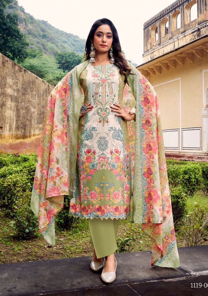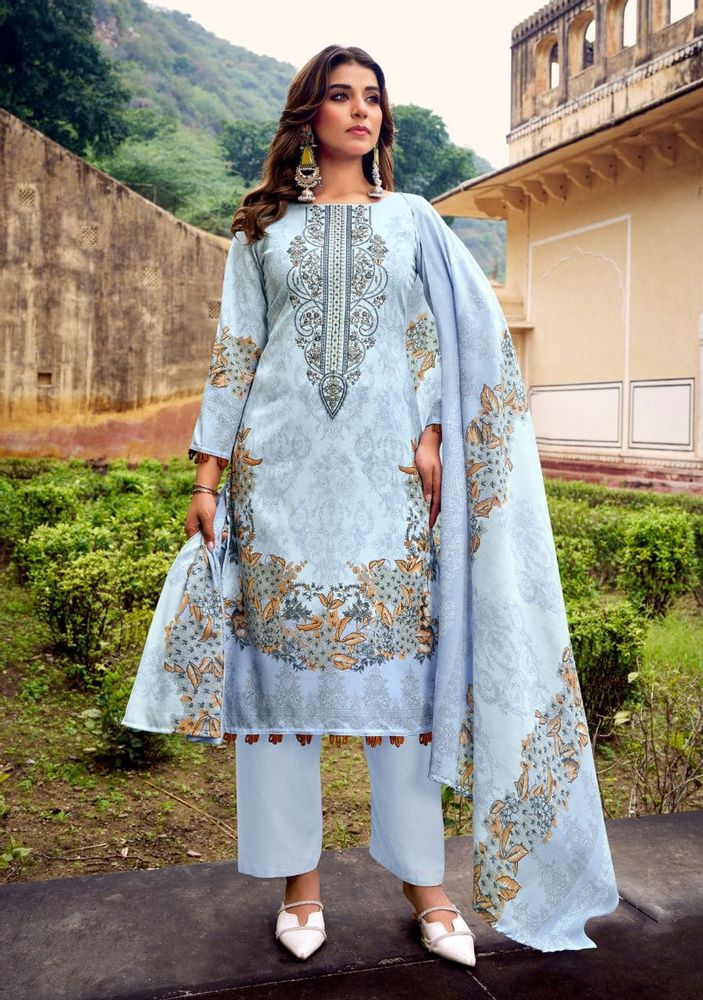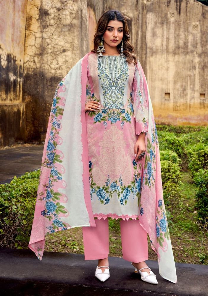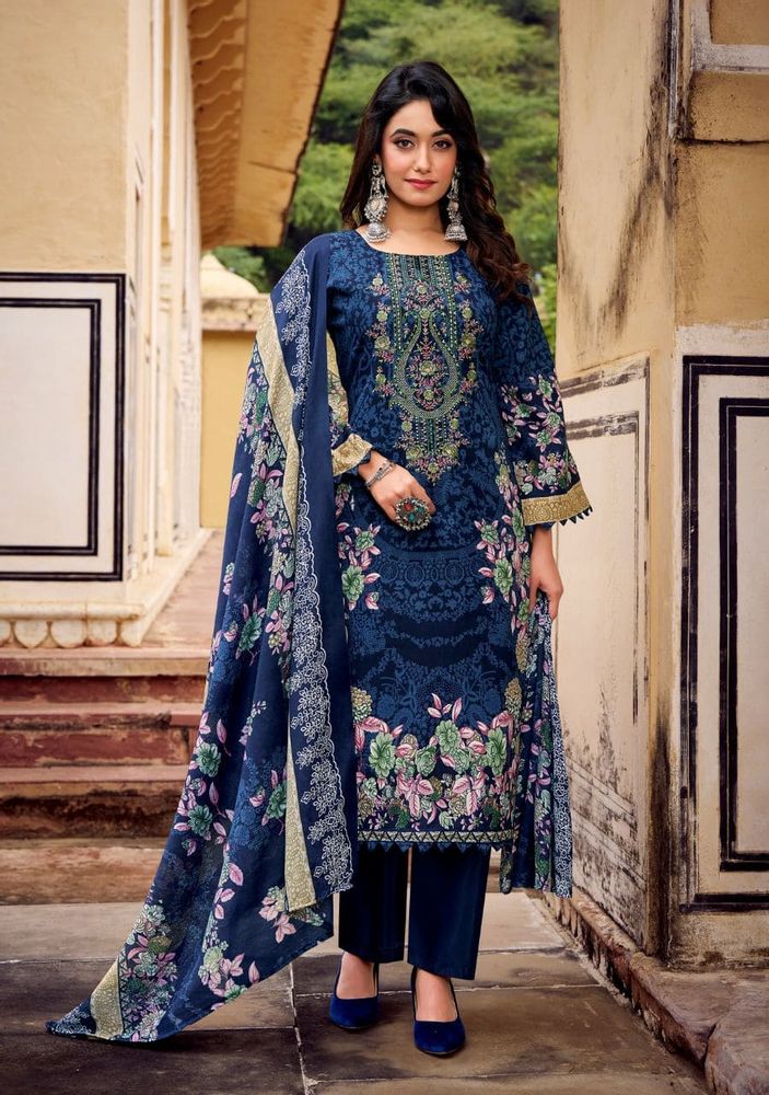 Celebrate your festive moments in style with Romani’s Needle Wonder Vol 4, a beautifully crafted collection designed for comfort and grace. Each suit showcases a Premium Soft Cotton Top with Heavy Embroidery Work and a modern Digital Print design, adding a perfect festive glow. The set is paired with a Soft Cotton Mal Mal Dupatta and a Matching Cotton Bottom, creating a flawless ethnic look for every occasion. Ideal for festive wear, parties, or casual gatherings, this collection combines elegance, softness, and sophistication in every piece.