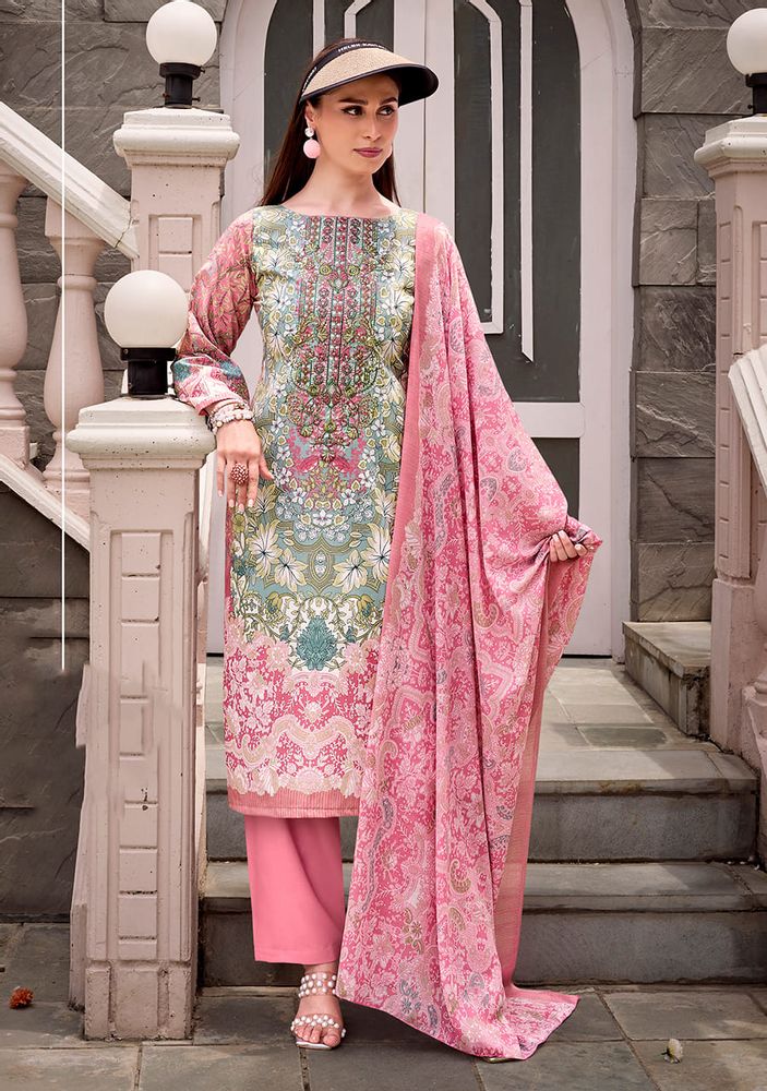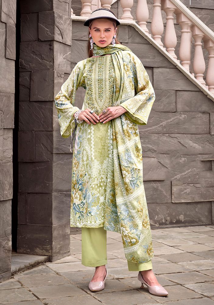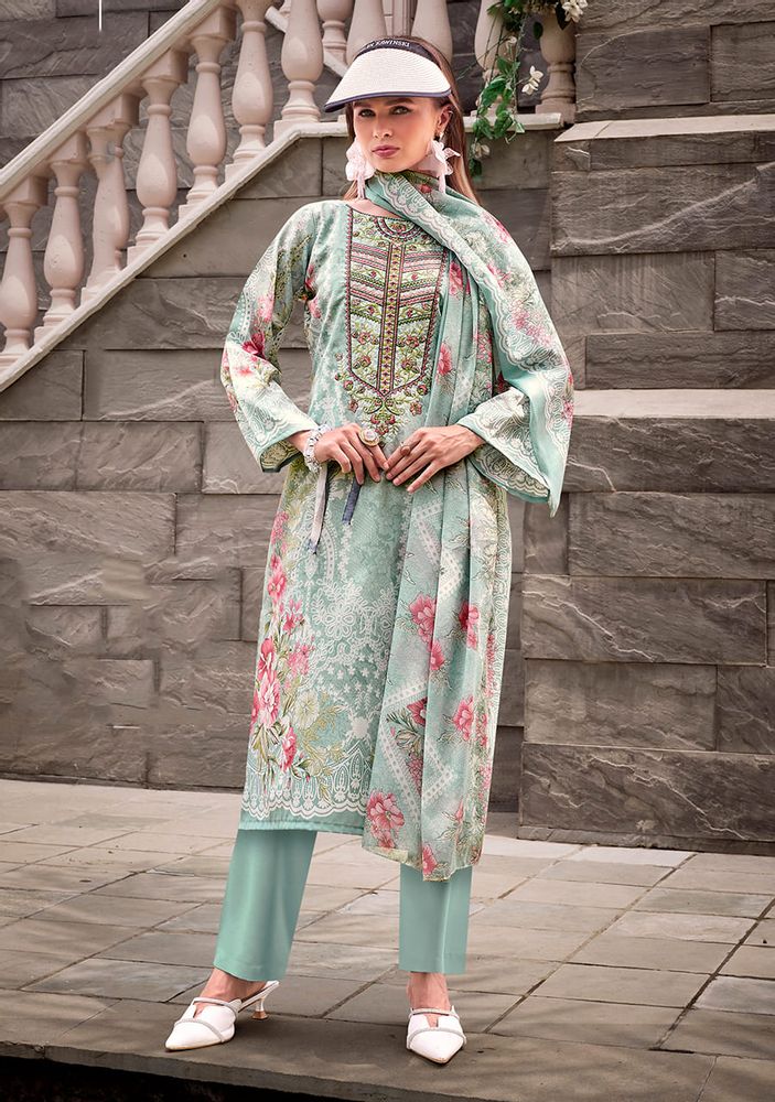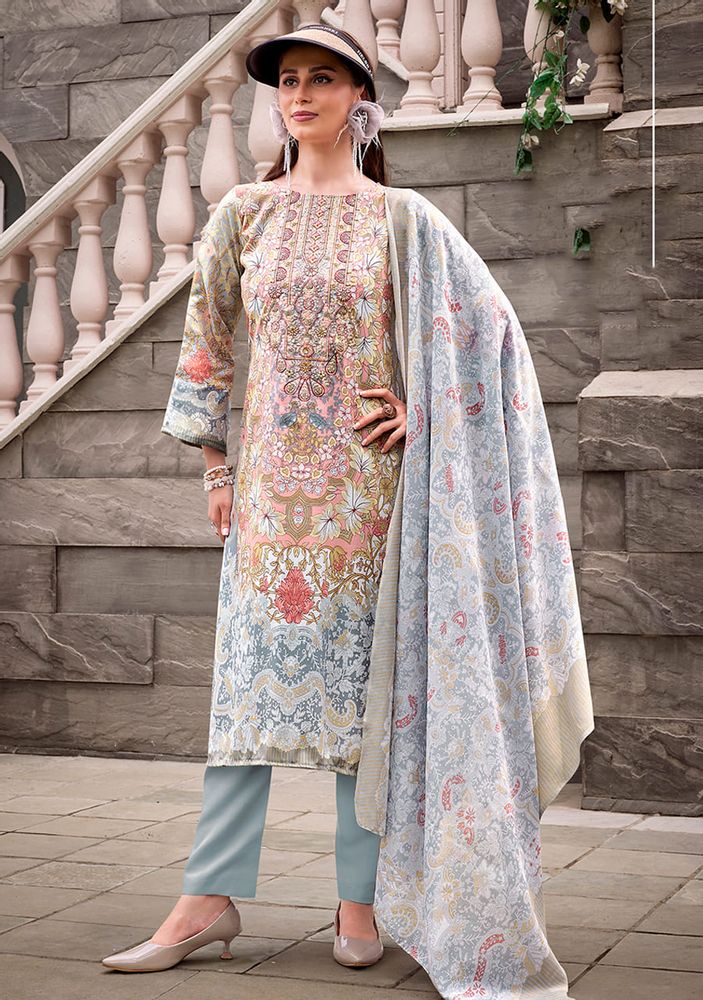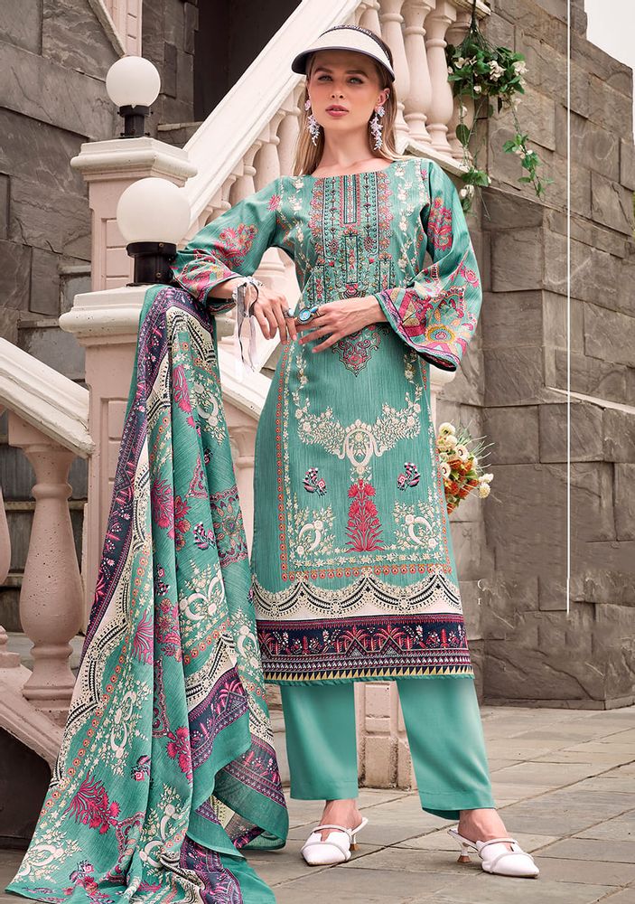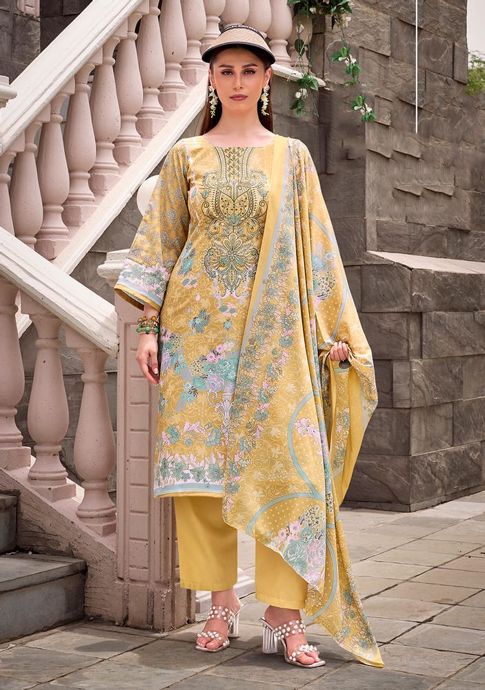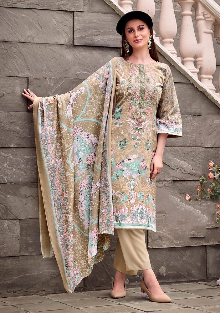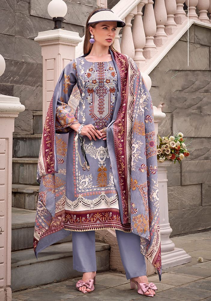 The top features Soft Cotton Digital Style Print enhanced with Heavy Embroidery Work, giving it a graceful and premium designer look. Paired with a Soft Mal Mal Cotton Dupatta, the set offers a light, airy, and elegant drape. The Soft Cotton Salwar adds extra comfort, making it perfect for long wear and all-day styling.