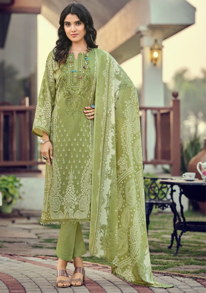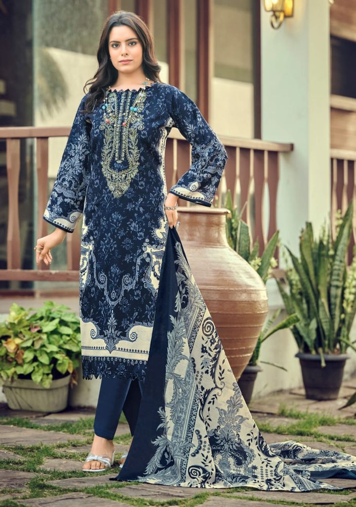 Elevate your festive style with Needle Wonder Vol 8 by Romani - an exclusive unstitched dress material collection for women. The premium soft cotton top features exquisite heavy embroidery on a digital-style print (2.50 m), paired with a soft mal mal cotton dupatta (2.30 m) and soft cotton bottom fabric (approx. 2.5 m). Perfect for custom stitching your own outfits, this collection is ideal for anyone exploring a suit catalogue for women or a ladies' suit catalogue.