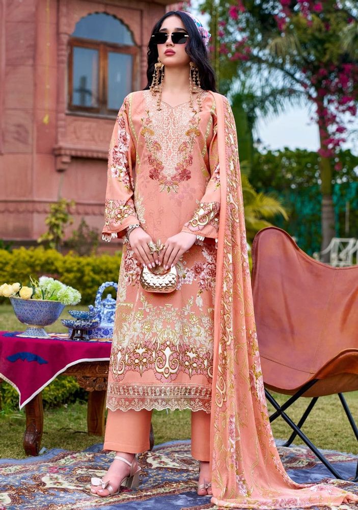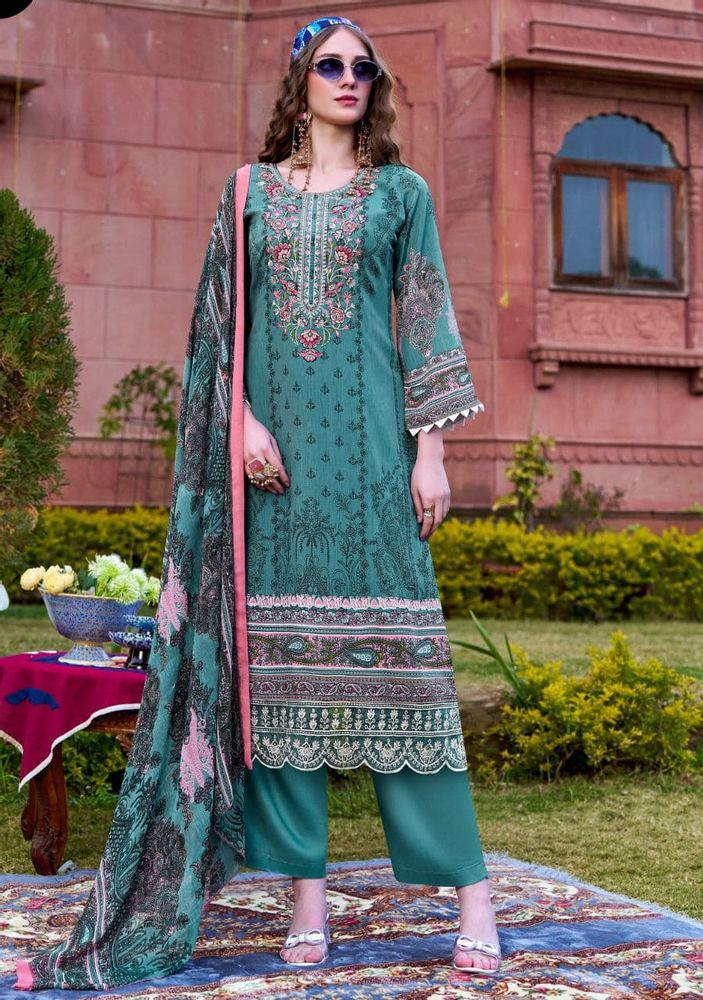 The suit is paired with a soft georgette chiffon dupatta that adds graceful flow and a refined finish, while the matching pure crepe bottom ensures comfort and durability. With its detailed craftsmanship and premium fabric selection, Rangreza fits perfectly into a high-end ladies' suit catalogue and a curated suit catalogue for women.