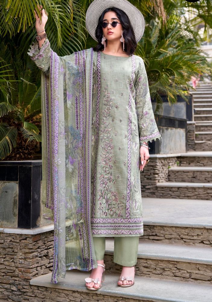 Rehana - Ethnic Wear Premium Cotton Linen Embroidered Suit Set