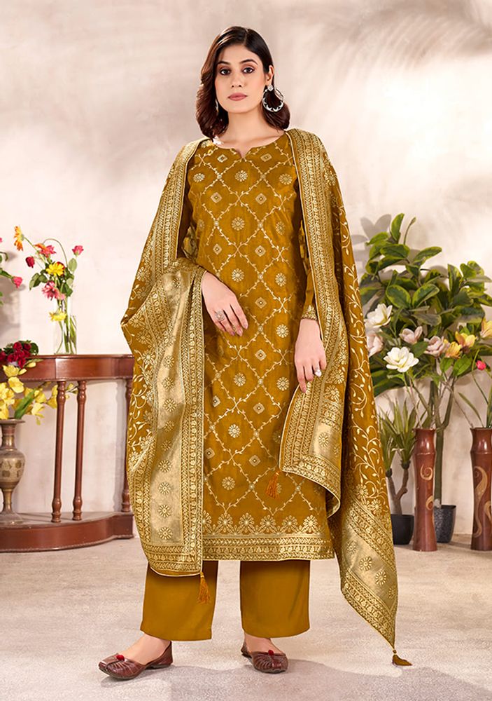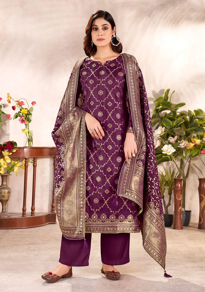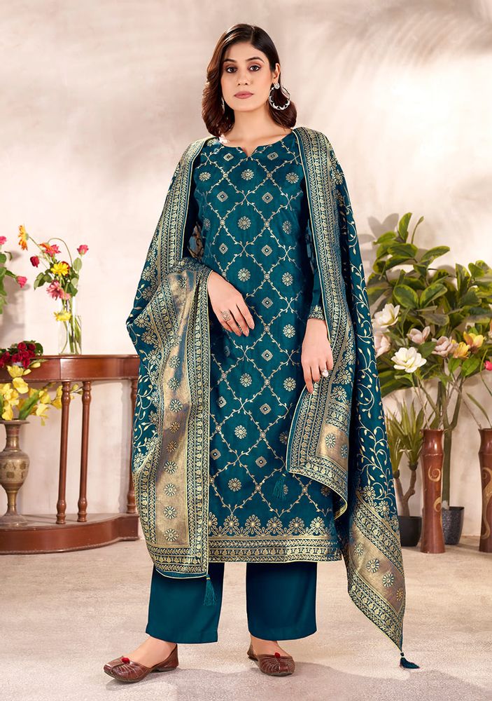 Rumi - Premium Viscose Dola Silk Jaquard Designer Festive Suit Set | Belliza Designer Studio