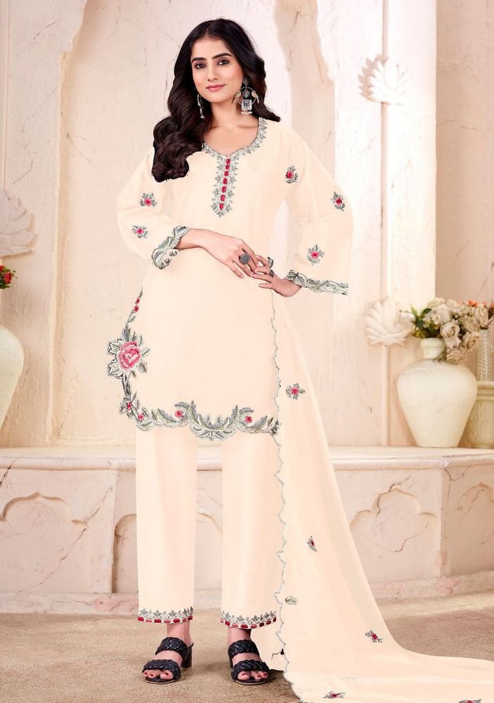 Sadiya Premium Cotton Suit Set with Sleeves Embroidery & Kota Doriya Dupatta (Kurti Pair)