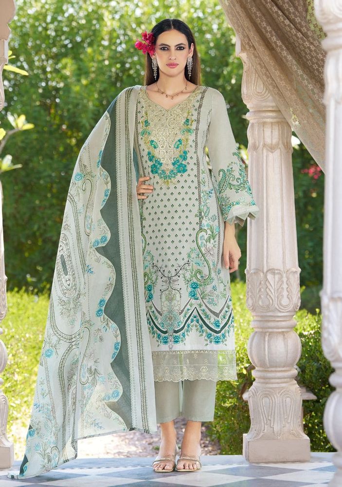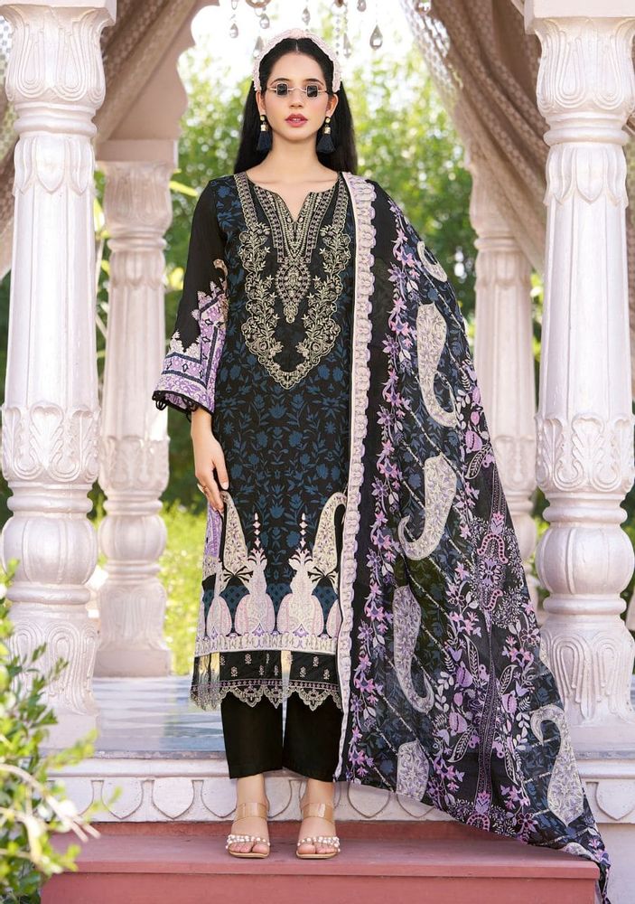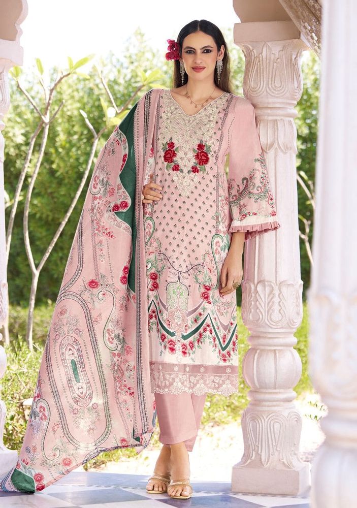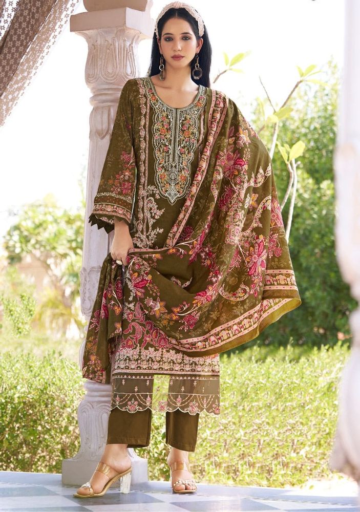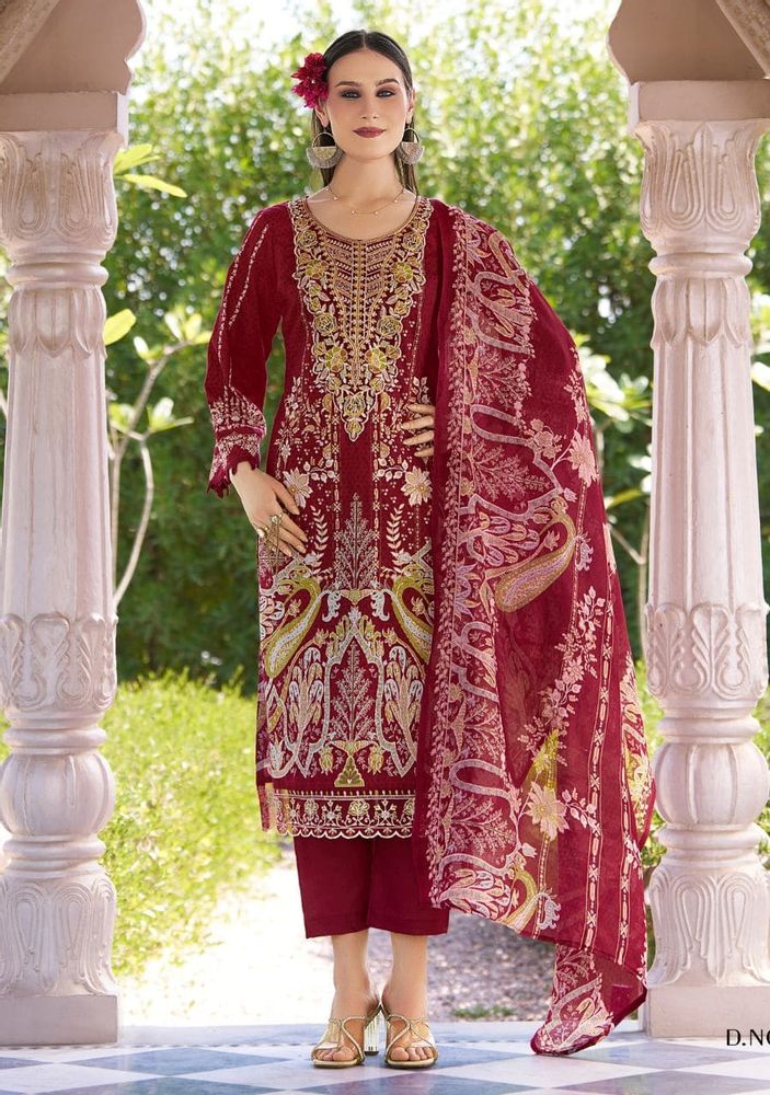 Safiya Vol 2 is a premium designer cotton suit collection made for a stylish and comfortable look. This set features beautiful digital print cotton fabric with heavy self-embroidery on the neck and elegant organza daman work, giving it a rich and classy finish. The soft mal mal cotton dupatta adds a light and graceful touch, making it perfect for daily wear as well as festive occasions. This collection fits perfectly in trending categories like cotton dress material and printed cotton dress material, making it a great choice for modern buyers.