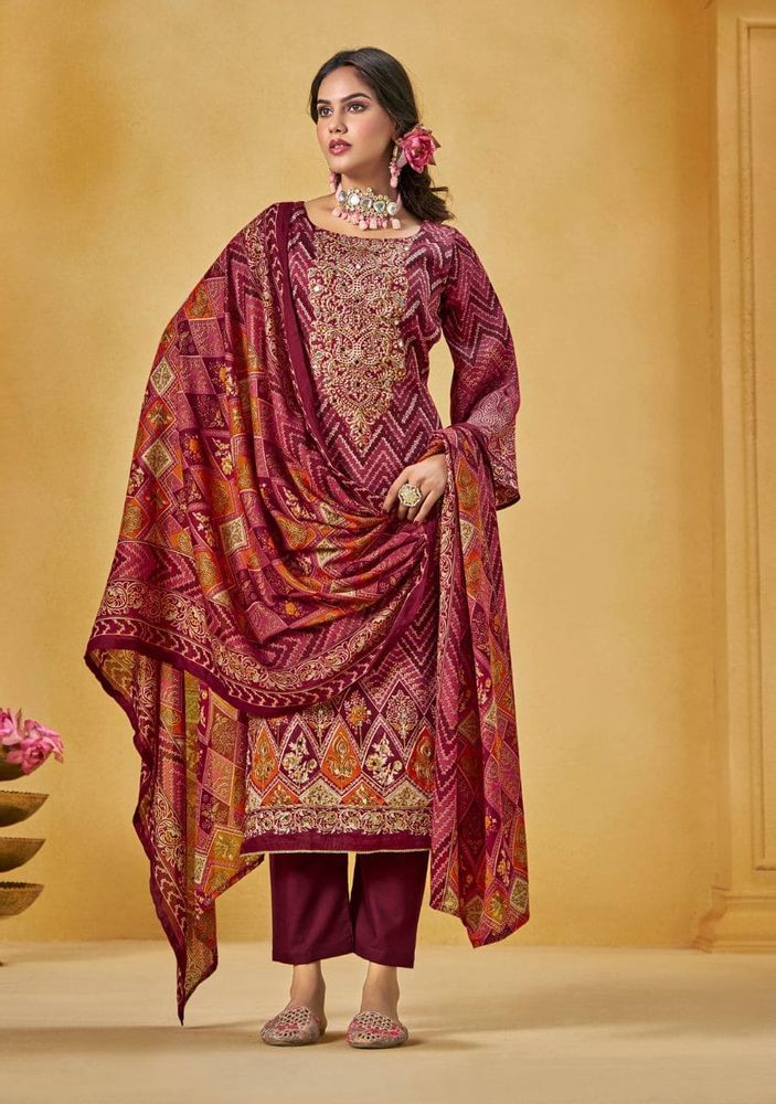 The top is made from 100% pure jam cotton with exclusive designer prints and rich heavy handwork, giving the suit a graceful and premium appeal. It is paired with a soft, breathable, printed dupatta made from pure malmal cotton and a comfortable pure cotton bottom. Ideal for buyers looking for reliable wholesale clothing suppliers online, this collection features a beautiful catalogue suit design suitable for festive wear, boutique collections, and premium daily styling.