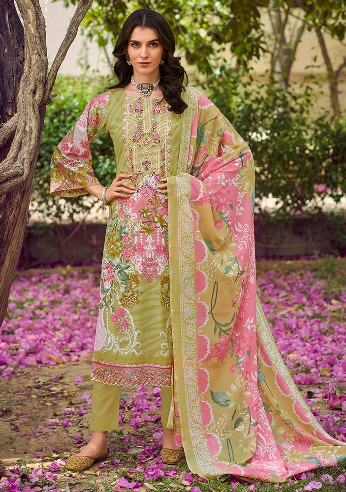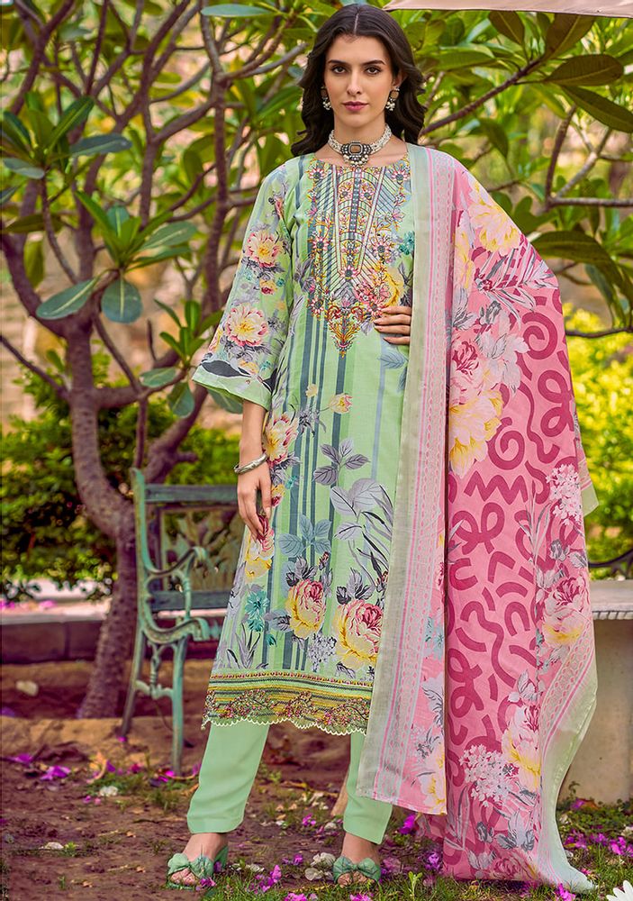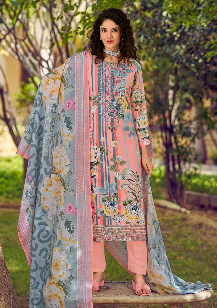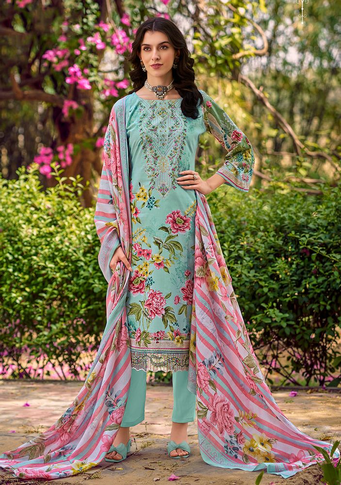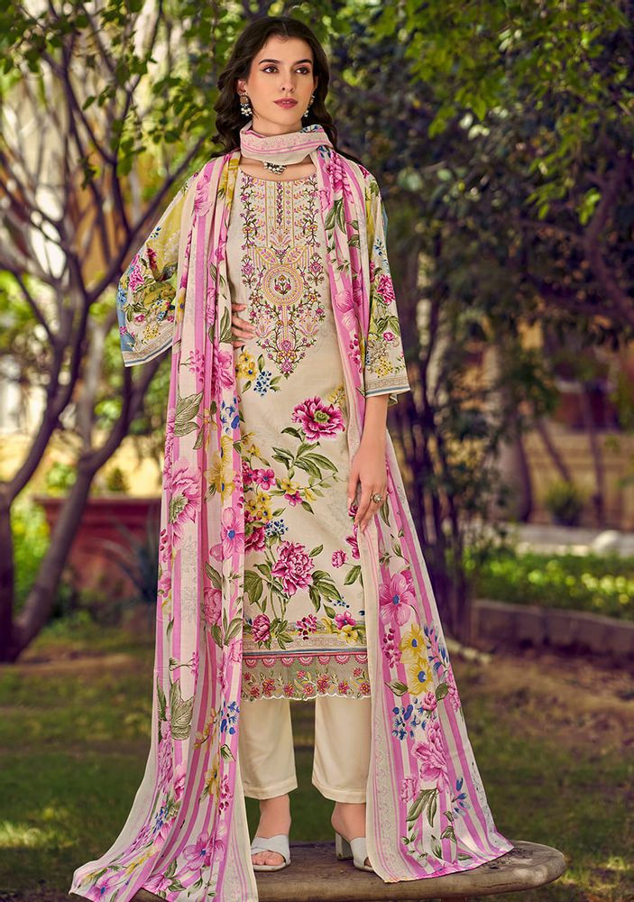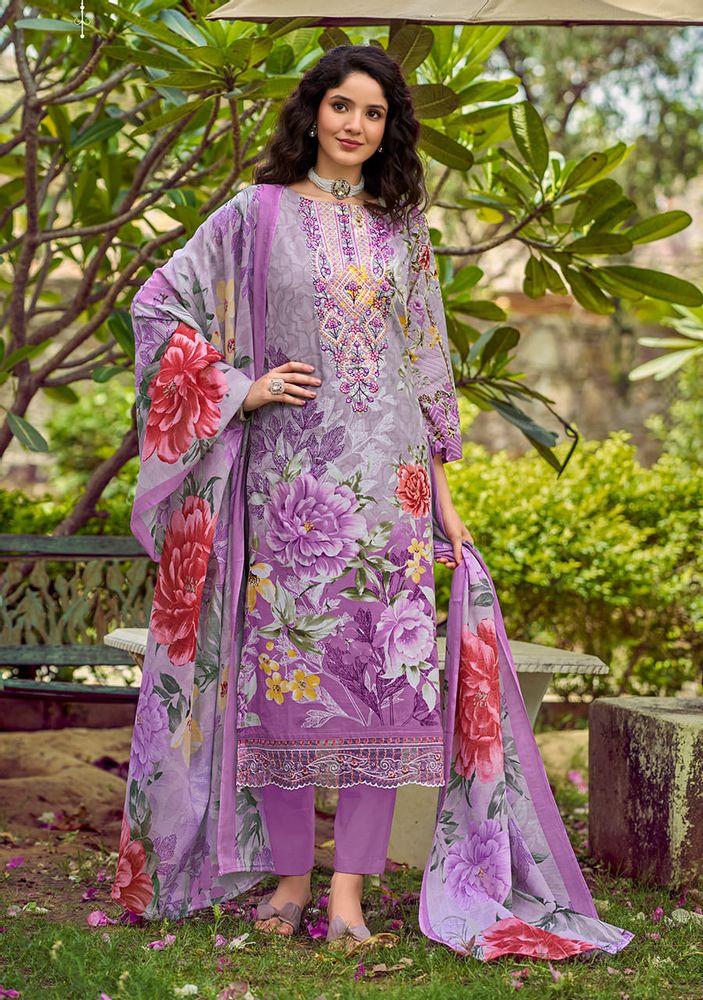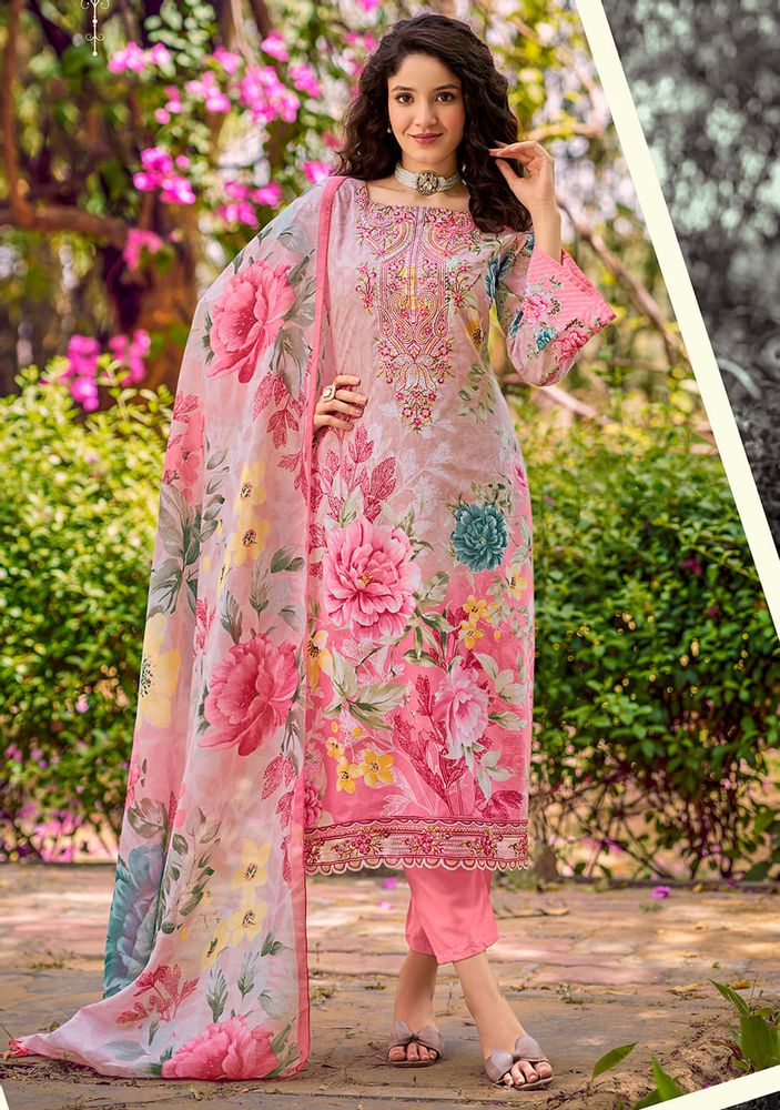 🔹 Top: Pure Cotton Digital Print with Heavy Embroidery Neck + Attached Daman Organza Embroidery (2.5 mtrs approx.)