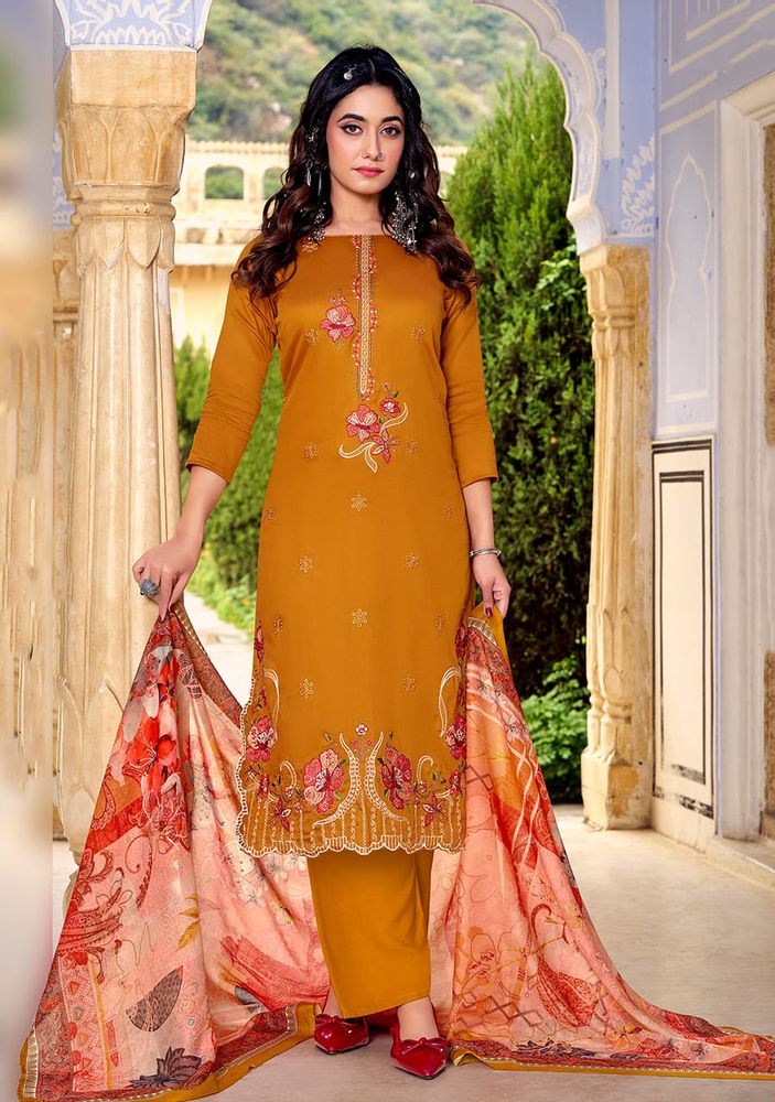 The Cotton Mal Mal Dupatta comes with a 4-side box digital print, adding a soft, graceful touch to the outfit. Paired with a Pure Viscose Rayon Bottom, the suit offers complete comfort, smooth texture, and a perfect fall. This collection includes 6 premium pieces, making it ideal for boutique buyers, festive wear, and designer showrooms.