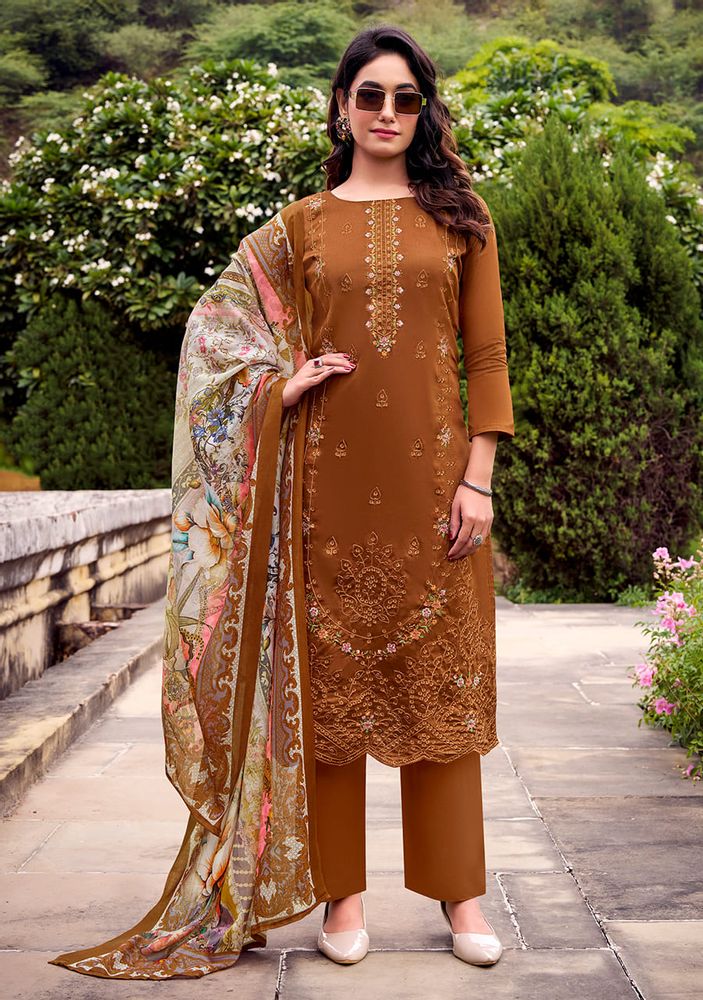 Presenting Nasreen, a beautifully crafted designer collection made for those who appreciate fine handwork, soft fabrics, and a graceful ethnic look. The top is made from pure Jam Cotton Satin, featuring exclusive prints and rich, heavy handwork that adds a stunning touch to the overall design. Paired with a soft Pure Mal Mal Cotton dupatta enhanced with elegant four-side lace, the set brings a blend of comfort and charm. The pure cotton bottom offers a smooth, breathable fit, making it perfect for festive outings, casual gatherings, or everyday elegance.